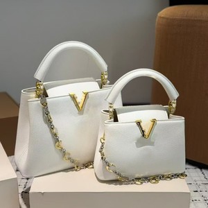 欧美时尚通勤手提真皮包cap妈咪包撞色拼接通勤单肩斜挎贵妇包女