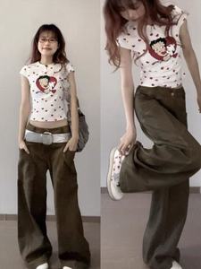 爱心波点印花短袖t恤女夏季2025新款正肩短款修身显瘦甜辣妹上衣
