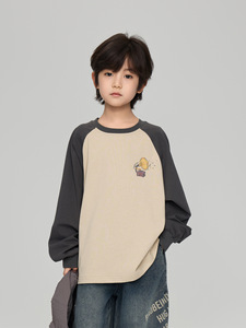 2025秋季新款儿童复古留声机数码印花打底衫男童美式插肩袖T恤潮
