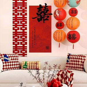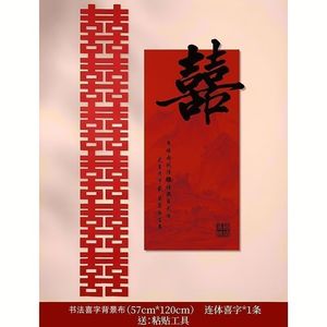 黑书法喜字背景墙套装二【送不伤墙美纹纸】
