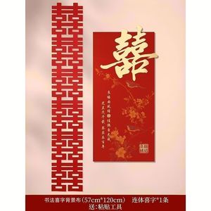 黑书法喜字背景墙【送不伤墙美纹纸】