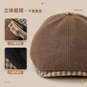 韩版新款女秋冬百搭英伦复古前进帽子日系格子沿贝雷帽报童画家帽