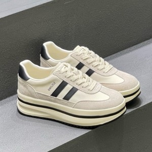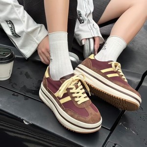2025新款复古风厚底拼色系带圆头德训鞋男女同款增高低帮休闲板鞋