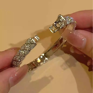 超闪镶钻纹路花边卡扣手镯欧美时尚百搭手环精致轻奢高级感手饰女