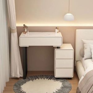 岩板收纳柜一体梳妆台卧室奶油风迷你小型现代简约化妆台