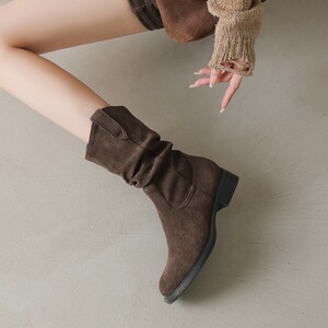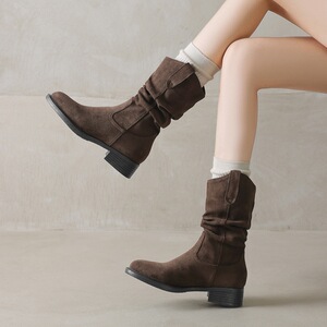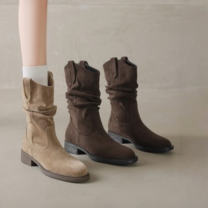 速鼎家 堆堆靴子女2025新款美拉德西部牛仔短靴中筒马丁靴春秋季