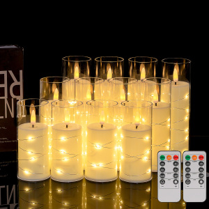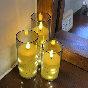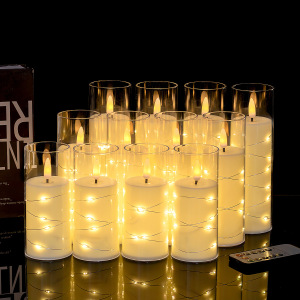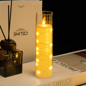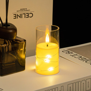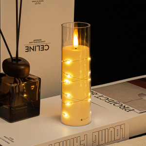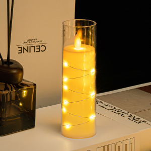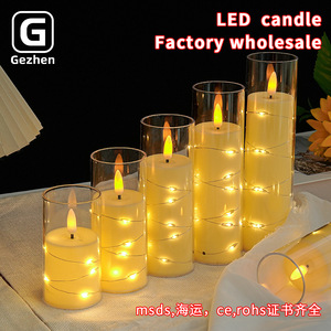 led电子蜡烛灯圣诞节派对灯串西餐厅摆件亚克力带杯蜡烛婚礼布置