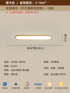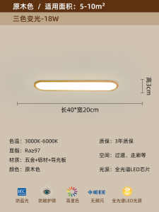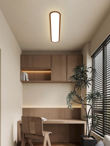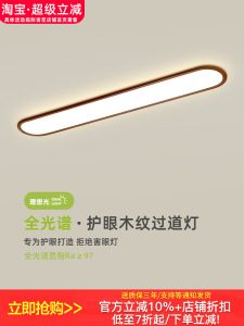 过道吸顶灯中古风超薄木纹入户玄关现代简约长条衣帽间走廊阳台灯