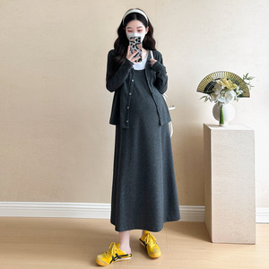 孕妇装2025早秋装新款时尚韩版宽松慵懒风潮妈连衣裙孕妇两件套