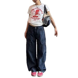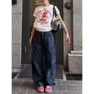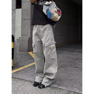 美式高街大口袋弯刀裤女工装裤设计感宽松褶皱嘻哈休闲水洗长裤潮