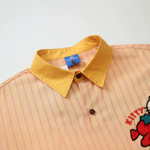 美式复古凯蒂猫刺绣条纹情侣衬衫2025秋季新款宽松百搭衬衣男女