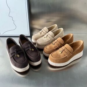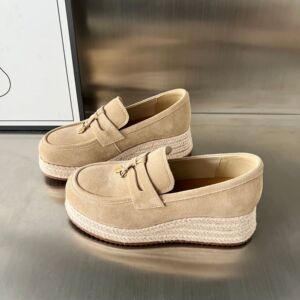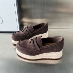圆头厚底乐福鞋女2025春季新款法式复古英伦风绒面一脚蹬渔夫鞋子