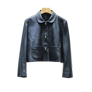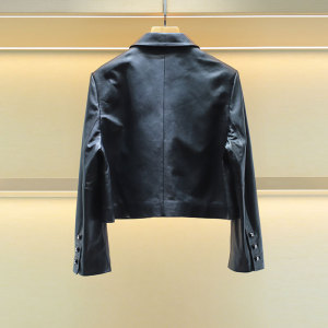 沫淑薇雅2025秋新款女装翻领单排扣口袋休闲皮衣短外套4V02D