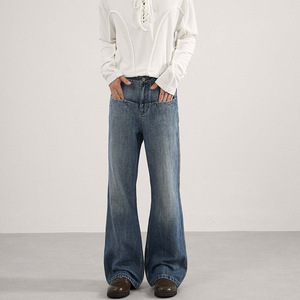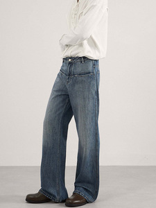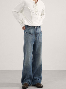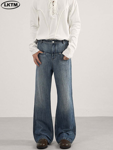 LKTM男装 美式复古插袋设计竹节牛仔裤男女潮牌显瘦休闲微喇长裤