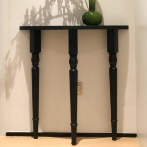 法式实木玄关桌简约半圆客厅入户走廊展示台靠墙窄架欧式黑色极简