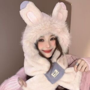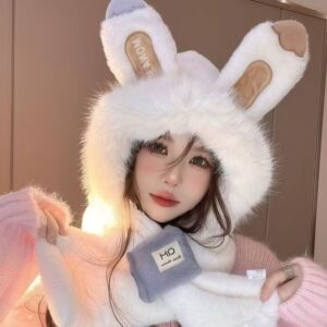 冬季新款可爱兔子耳朵毛绒帽子女冬季保暖护耳雷锋帽防寒滑雪帽子
