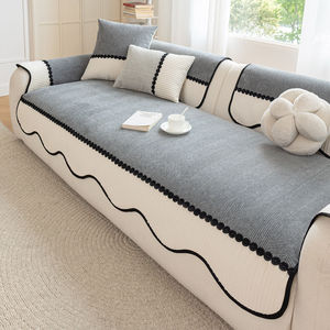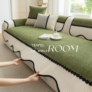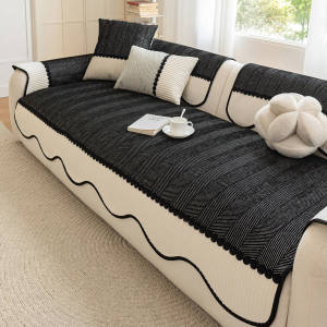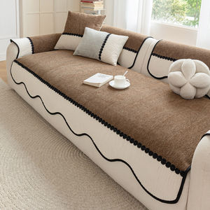 现代简约沙发垫四季通用2025新款雪尼尔条纹固定防滑异形沙发坐垫