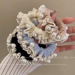 甜美仙气梦幻珍珠小肠发圈女高级感2025新款气质扎低马尾皮筋发饰