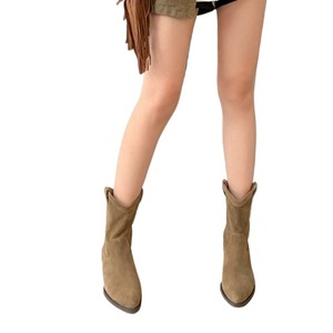 短靴女粗跟尖头西部牛仔靴2025新款马丁靴春秋夏季单靴口瘦瘦靴