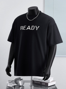 夏季高品质300g重磅印花T恤男新款经典字母READY圆领宽松男女款T