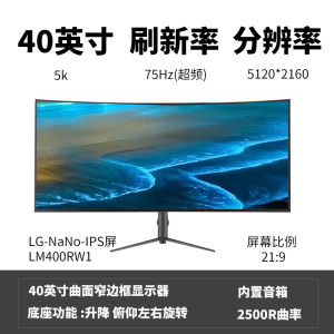 40寸5k75hz 带鱼屏 2500R曲率 带65W Typec 内置音响 LG面板原厂模组