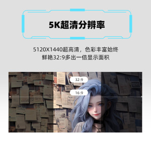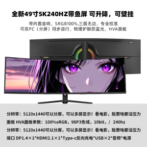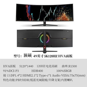全新49英寸5k120hz HVA面板 带鱼屏曲率1500R 带65w typec