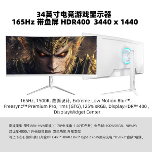 白壳34英寸准4K165HZ带65WType-C