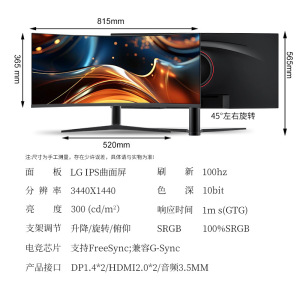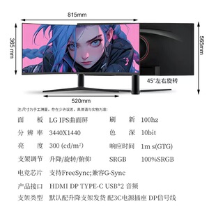 34英寸4K100HZ NANO IPS LG面板 2个DP 2个HDMI