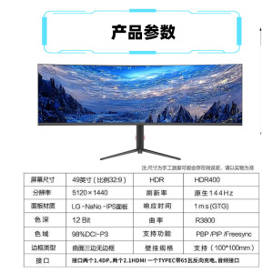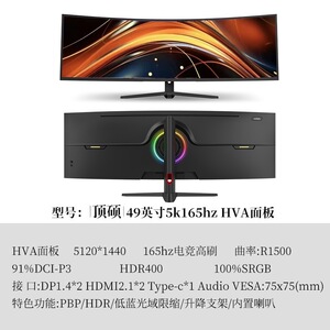 全新49英寸5k165hz HVA面板 带鱼屏曲率1500R 带65w typec