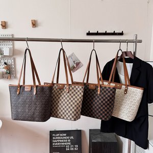 2025夏季新款bags大容量印花方格字母百搭质感单肩手提托特包批发