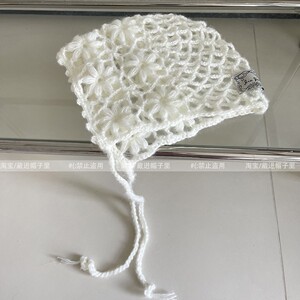 韩国ins博主同款25SS镂空花朵侍女帽子可爱系带勾花包头帽冷帽女
