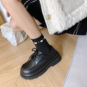 2025英伦小皮鞋女粗跟学院风系带可踩脚单鞋真皮厚底乐福鞋
