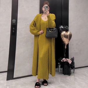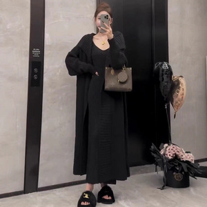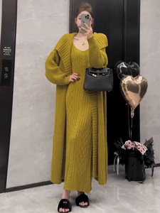 韩系氛围感吊带长裙外搭长款开衫两件套女秋冬新款毛衣连衣裙套装