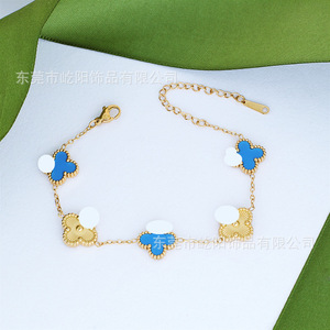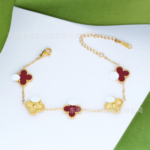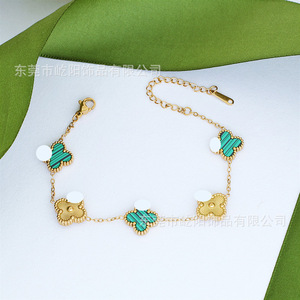 高品质爆款18K四叶草双面五花手链金夹花手链时尚百搭手饰品批发L