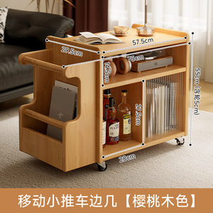可移动沙发边柜侧边柜客厅家用储物柜置物架实木茶几桌边几小推车