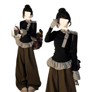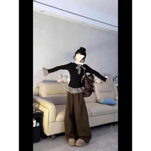 2025年新款早春装超好看的花边针织上衣宽松阔腿裤时尚休闲套装女