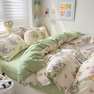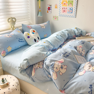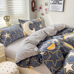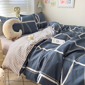 新款被套四件套纯棉加厚A类母婴级ins水洗棉床单款磨毛宿舍三件套