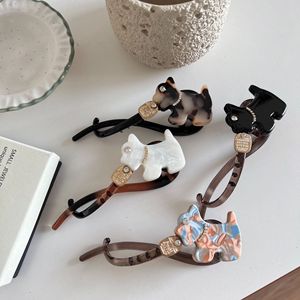 高级感水钻醋酸小狗扭扭夹后脑勺半扎盘发夹子法式少女发卡发饰品