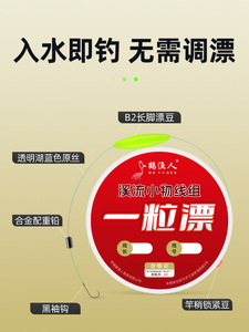 免调溪流一粒漂豆小鱼钓鱼线组成品主线黑袖钩铅皮坠钓鱼用品大全
