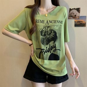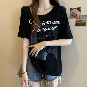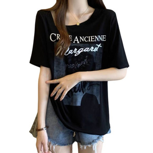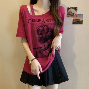 大码女装美式复古短袖t恤女夏季2025新款女装宽松显瘦斜领上衣女