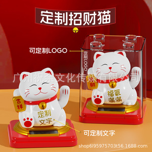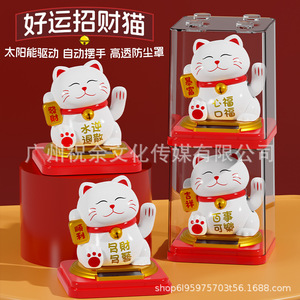 新款3.5寸车载太阳能招财猫装饰摆件自动摇手开业礼品招财装饰品