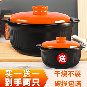 砂锅买一送一耐高温大容量砂锅煲家用燃气炖锅陶瓷煲仔锅大容量