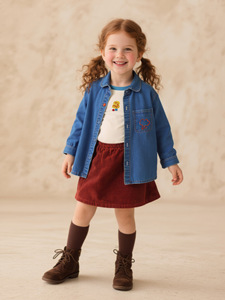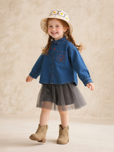 童贝童装2025年秋季新款女童牛仔衬衫外套卡通印花儿童百搭上衣