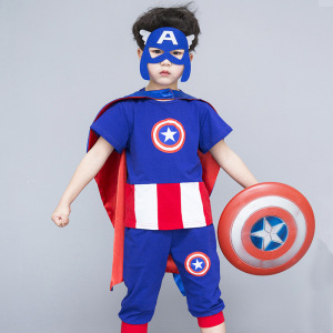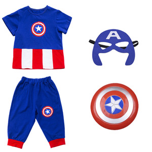 美国队长服装蜘蛛侠套装男孩夏季衣服儿童角色扮演服装六一演出服
