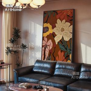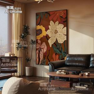 奶油中古风风餐厅装饰画花卉高级感挂画沙发后面的壁画客厅落地画