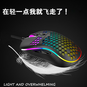 幽蝠跨境洞洞鼠标蜂窝游戏有线发光镂空轻量化电竞USB发光亚马逊