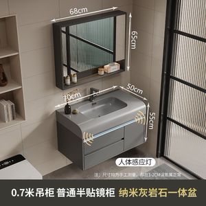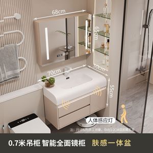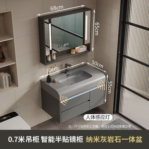 灰色-70肤感一体盆 #升级智能玻璃门镜柜