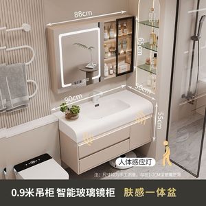 灰色-90肤感一体盆 #升级智能玻璃门镜柜