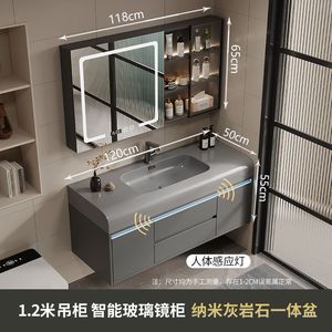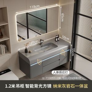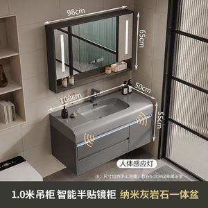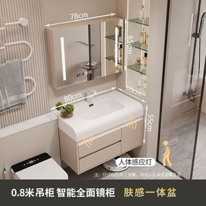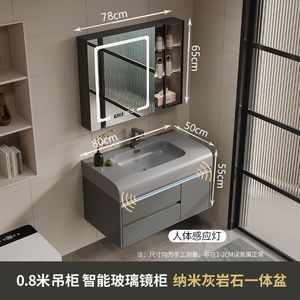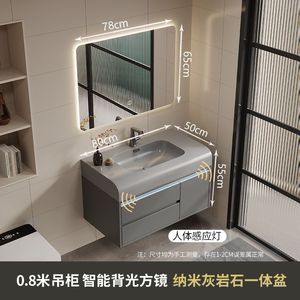 灰色-80肤感一体盆 #升级智能玻璃门镜柜