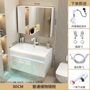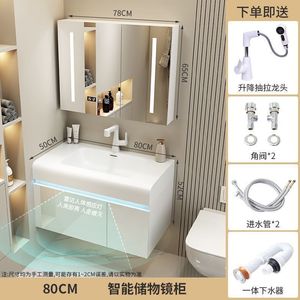 白色-80肤感一体盆 #升级智能玻璃门镜柜